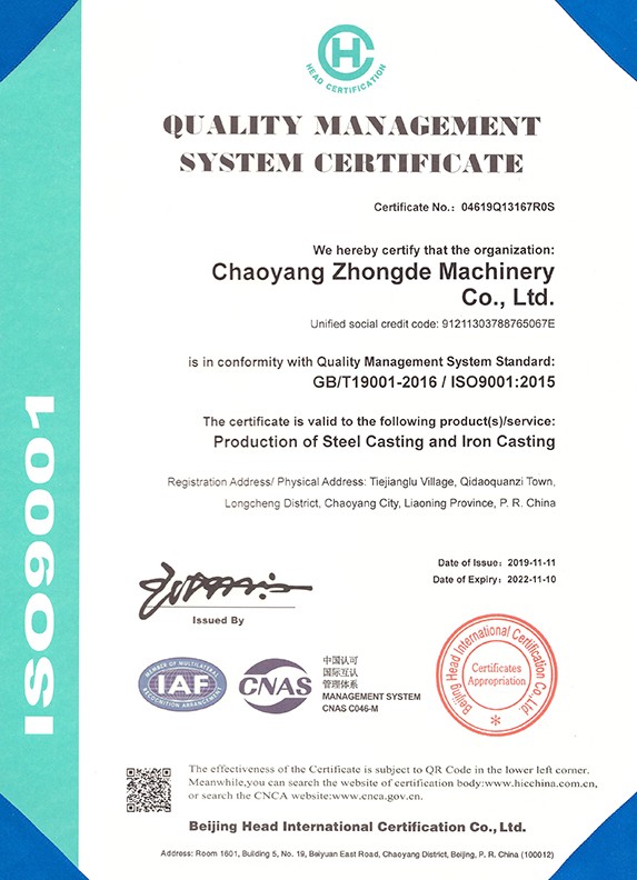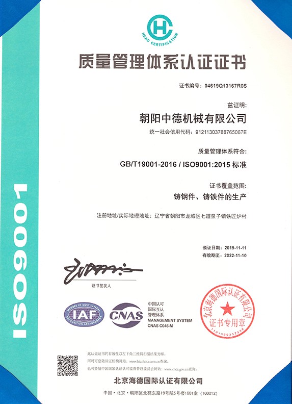 朝陽中德機(jī)械有限公司座落于有著“東方佛都”之稱的三燕古都,歷史文化名城——朝陽,具體位置朝陽市龍城區(qū)七道泉子鎮(zhèn)鐵匠爐村。公司創(chuàng)建于2006年5月是一家以鑄鋼件、鑄鐵件,集按用途設(shè)計(jì)、開發(fā)、生產(chǎn)、銷售于一體的,為機(jī)械設(shè)備配套的生產(chǎn)型公司。公司注冊(cè)資金1000萬,固定資產(chǎn)投資1480萬元,主要生產(chǎn)設(shè)備GGW-5T,GGW-10T,GGW-10T中頻感應(yīng)爐;GDY-13C高溫電阻窯、GDY-9.5C電阻窯,M4000型直讀光譜儀,DP-3985型硬度測(cè)試儀,倒置式金相顯微鏡、拉伸試驗(yàn)機(jī)、超生波探傷儀,檢測(cè)手段完備。